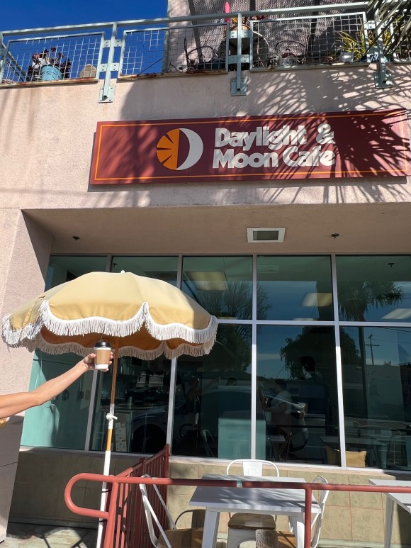 Stop #2 – Daylight & Moon cafe on Loma Vista Road. The space is bright and clean, the staff are genuinely friendly, and they actually care about the quality of what they serve, even if it’s just drip coffee (which is what we’re getting). The coffee is strong and punchy which is perfect to pair with our sweet treat. My drip came out to $3.77.