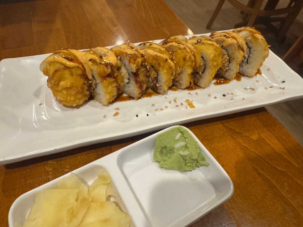 For someone who is not fan of raw fish, this Crunch Roll is a great substitute to fit your sushi cravings. The outer shell was crispy and the salmon, tuna, albacore, and crab were cooked perfectly and it was paired with this eel sauce and aioli that was sweet and savory which complimented the fish well. Most of all the service was excellent and the staff were very professional making it a great experience.