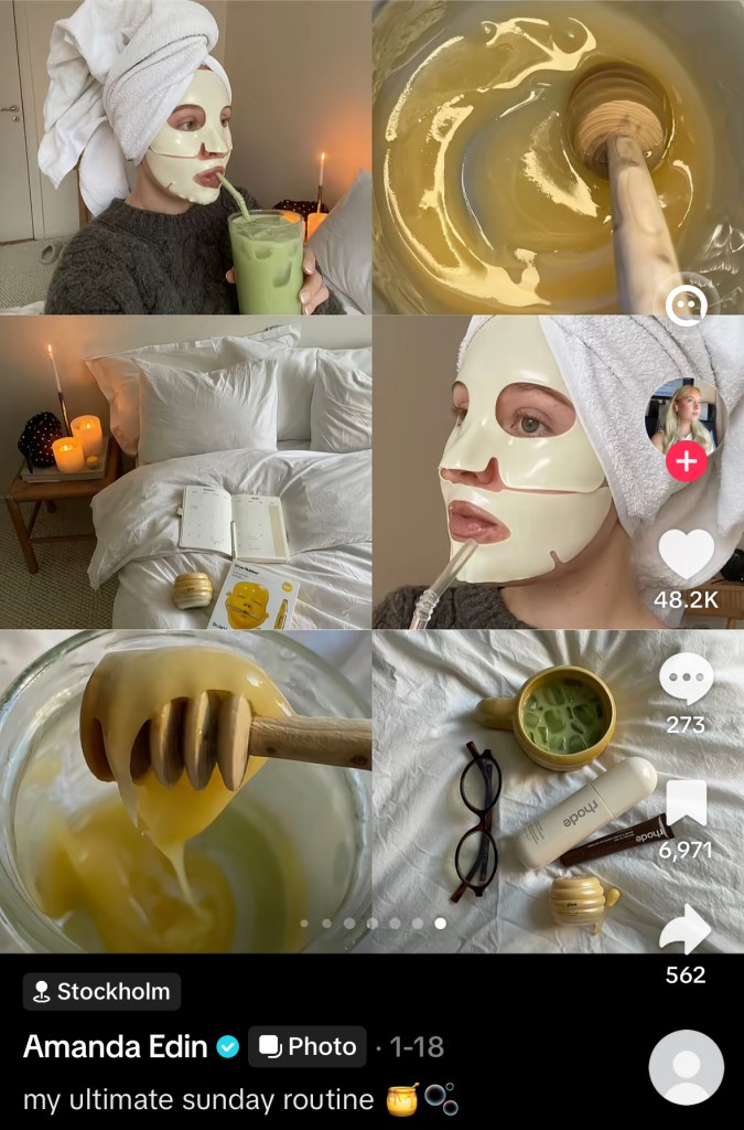 To piggyback on the strong effects of “soft selling,” influencers carefully curate their image to align with their niche, aesthetic, and branding. They achieve this through neatly arranged products, cohesive color palettes, minimalist setups, and bright lighting. This visual clarity brings a sense of calm to a chaotic feed, encouraging viewers to stop and watch — often without realizing how much time has passed. Much of “Sunday Reset” content taps into these polished, effortless vibes such as glowing skin (as a result of an elaborate skincare routine), athlesuire outfits for casual outings like getting iced coffee, and ASMR-like clips cleaning and organizing their environment. All of these elements subtly communicate the idea that “this is what having your life together looks like.” That image is then perceived as both inspirational and attractive, while capturing the audience’s attention and keeps them coming back for more.