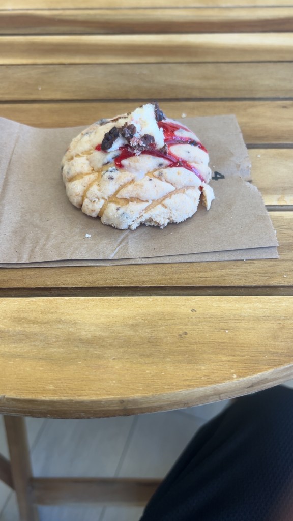 Another item I got was a Mexican chocha, they have many more Mexican breads. The one I got was a gonsito flavor. If you don’t know what a gansito is, it is a chocolate cake filled with strawberry-flavored jelly and cream, covered with chocolate sprinkles. We Mexicans call it the Mexican Twinkie because it looks exactly like a Twinkie. When I went there they also had an Oreo-flavored one as well. Overall, the chocha was good, and I will get it again. I give the chocha a ten out of ten.