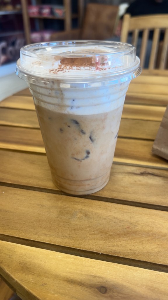 I got a “café de olla” which means coffee from a pot in English. I didn’t know this was the most popular drink until somebody told me, and people buy this coffee every time they come. This coffee has cinnamon dust, foam, and cream, and you can get it iced or hot. For me, this is one of the best coffees that I have had in my life, I will definitely get it again the next time I go, and I recommend it to everybody who wants to try this coffee shop.