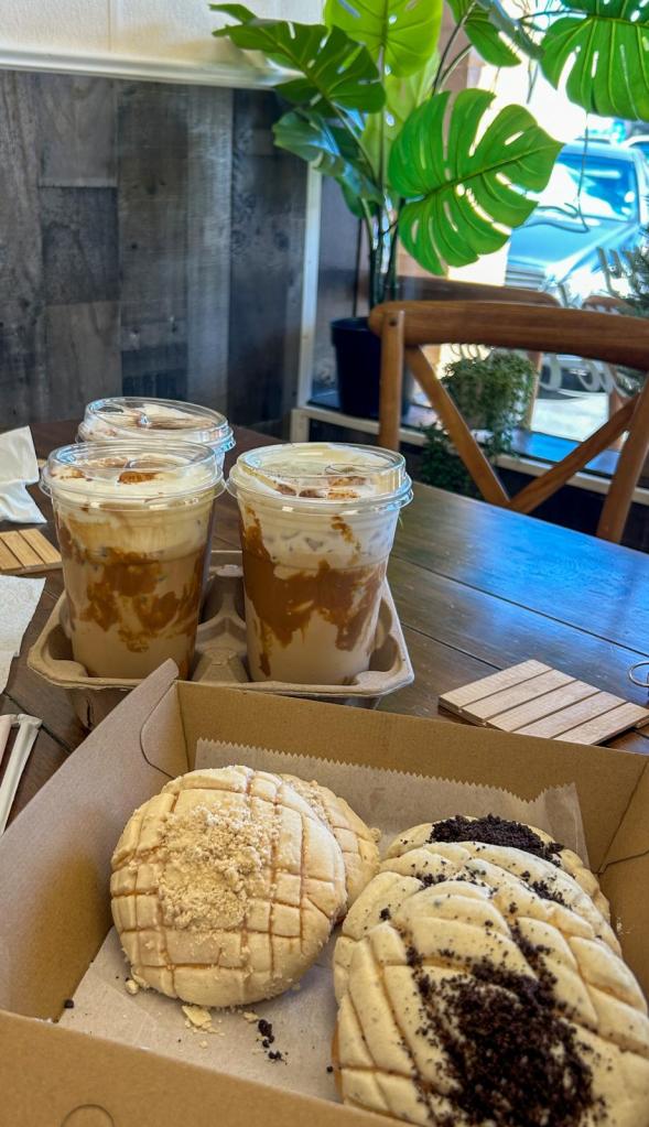 If you like sweet coffee drinks, I’d recommend the iced café de olla and the Biscoff latte. If you want something to pair with your coffee, try the conchas. Trust me- you won’t regret it.