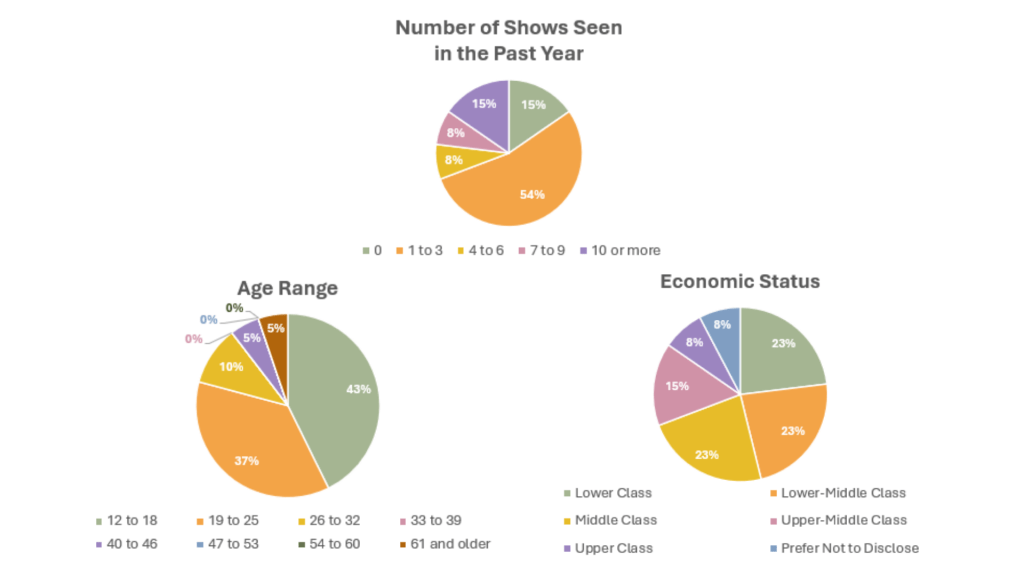 We all have our own areas of expertise, and to my parents’ playful displeasure (they always joked about me becoming a lawyer), my area of expertise is theater. I have spent most of my life being involved in some sort of way, though it’s only recently that I’ve gotten to be properly involved in theater projects, from earning more substantial acting parts to even directing a short play. And with my extensive love for all things performing arts, I could gush and rant about every theater show I see. Being in shows as a full time student are difficult and opportunities are rare, so I have found solace in simply watching shows as I fantasized about my future career paths. Sitting in the audience, I would often think, theater is so wonderful, there’s nothing like a live performance to connect an audience to a story, this show could be so impactful to others my age or younger, and other wistfully naïve thoughts that made me reflect: what made theater so wonderful to me? Do others see it the same way? After hearing from the community, I have decided to try to see why those matinees I’ve been going to have had more and more open seats.