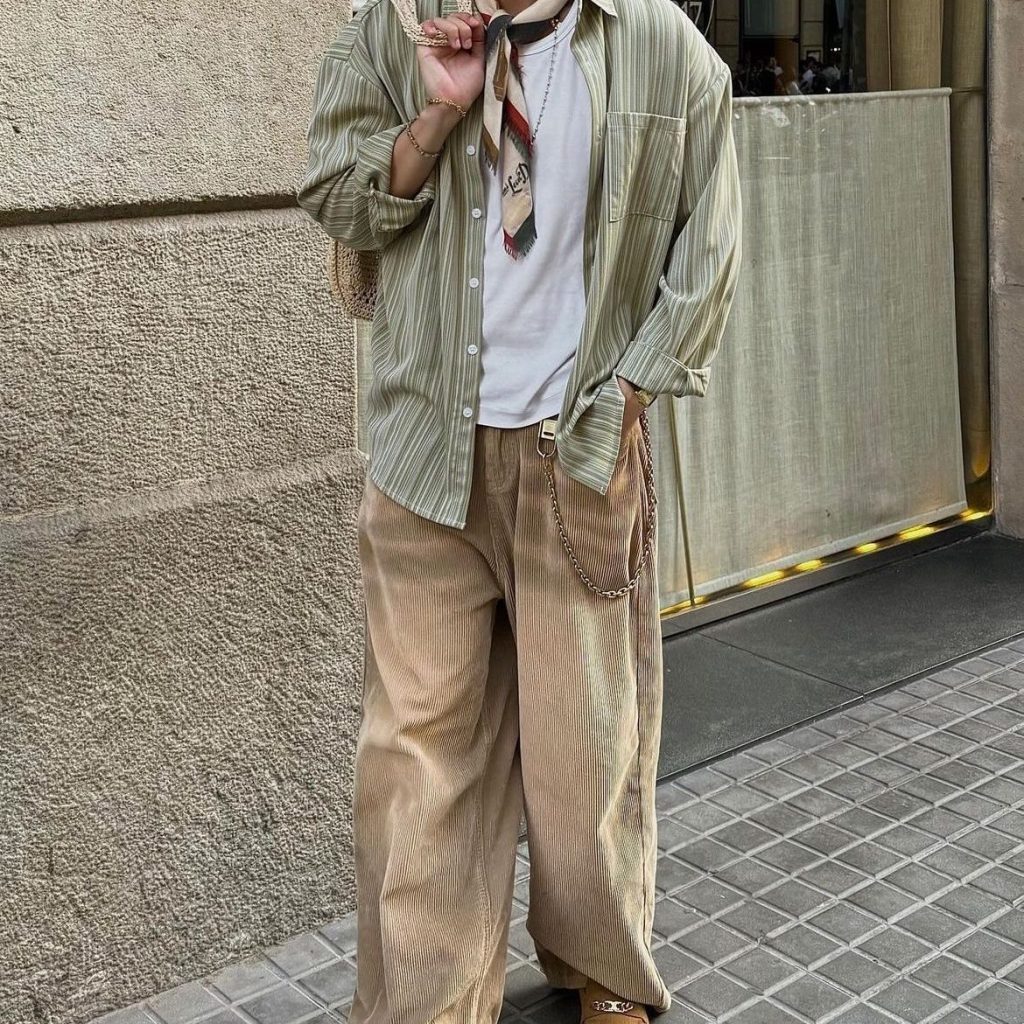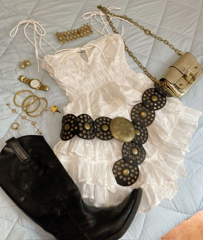 This style combines bohemian and hippie fashion influences. It’s a relaxed and free vibe with a mixture of dramatic flowing fabrics with neutral & earth tones. This includes vintage pieces, chunky belts, and cowboy boots. The main staple pieces that play a huge role in this style are the chunky, layered statement jewelry and silk scarves to add a touch to it. This style is seen the most in musical festivals like Coachella and EDC.