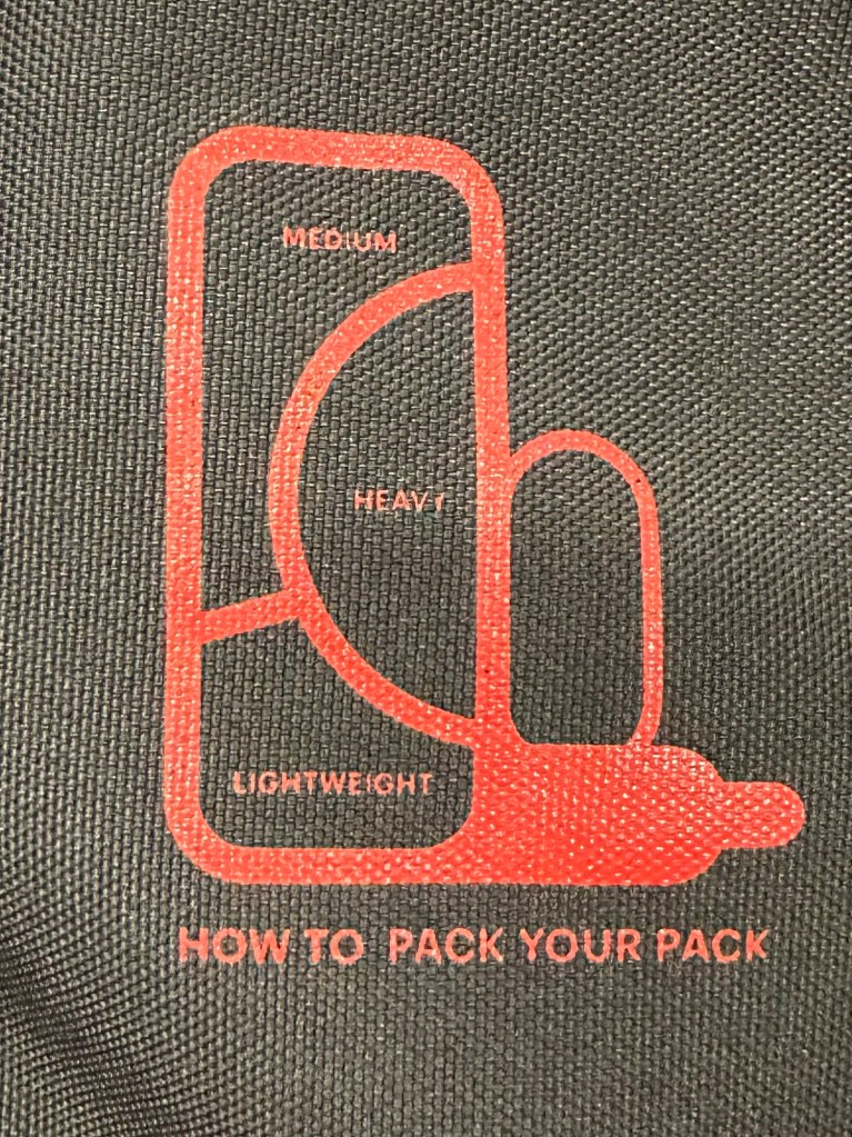 Finally, we have all that we need it’s time to pack your pack, the lightest things will go at the bottom like your pillow, and sleeping bag that should be put into a compression sack and sleeping pad. The heavier things will go in the middle which is closer to your body like a tent, backpacking stove, or cook set. The top can be filled with any things left over, like your dry food, base layers, first aid kit, headlamp, portable charger, hygiene items (toothbrush and deodorant), snacks that can be put in dry sacks with your water filter and your poop trowel should be in a Ziploc bag. On the outside side pockets, you’d want to put your poles for your tent and your Nalgene’s.